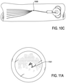 In this example, the guide member is a rigid elongate member (although non-rigid members may be used) that includes multiple guide regions, such as channels, along the device for directing the implant's silver-releasing arms out of the device. In the example shown in FIG. 19A, these guide regions are open channels, as illustrated in the cross-sections through the guide member in FIGS. 19B and 19C. In an alternative embodiment, these channels may be closed channels, as shown in alternative cross-sections 19D and 19E.