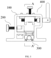 - the horizontal clamping mechanism 200 comprises a horizontal driving portion 210 , a horizontal sliding block 220 , and a horizontal guiding portion 230 .