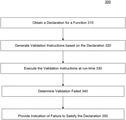- the validation instructions can be generated based on a declaration (e.g., included in function definition 120 ), which can specify the conditions on the arguments to the function.