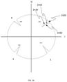 In FIG. 12A, a first modulation perturbation (1) is at a phase angle Θ1 of 45° and subtends an angle Δθ1 of approximately 1° between 44.5° and 45.5° (not shown to scale). A second modulation perturbation (2) is at a phase angle Θ2 of 315° and subtends an angle ΔΘ2 of approximately 0.5° between 314.5° to 315.5°. A third modulation perturbation (3) is at a phase angle θ3 of 225° and subtends an angle ΔΘ3 of approximately 1° between 224.5° and 225.5°. A fourth modulation perturbation (4) is at a phase angle θ4 of 135° and subtends an angle ΔΘ4 of approximately 1° between 134.5° and 135.5°. In order to achieve energy balancing of the energies associated with modulation perturbations at 45° and at 225°, and energy balancing of the energies associated with modulation perturbations at 135° and at 315°, values of the modulated sinusoid defining transitions into and out of the modulation perturbations may be modified. Alternatively or in addition, the angles subtended by the modulation perturbations may be modified in order to achieve such energy balancing.