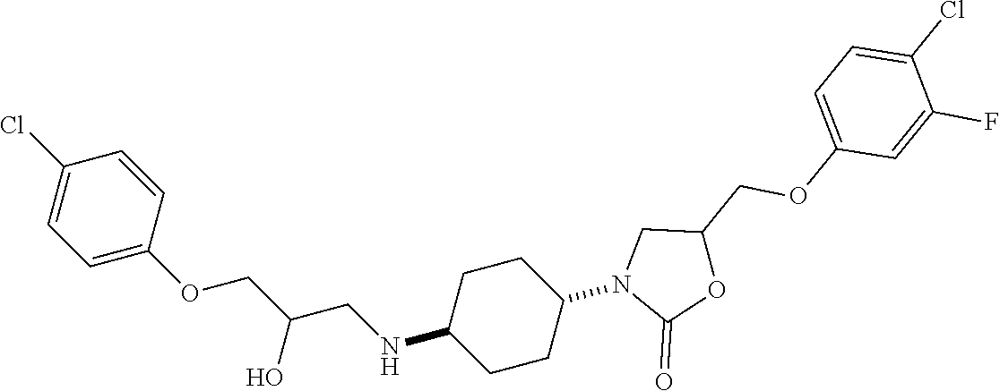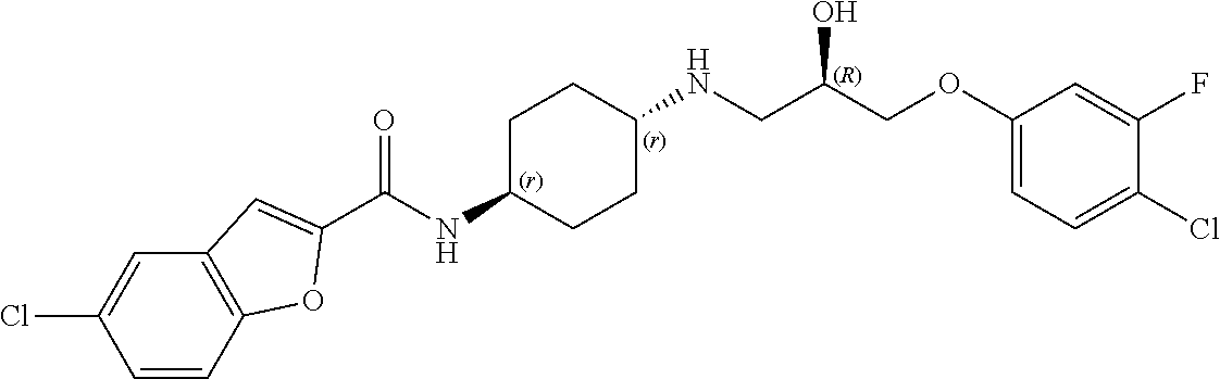 - RXRMCQPPYJLBOK-UHFFFAOYSA-N O=C(NC1CC2CCCC(C1)N2CC(O)COC1=CC(F)=C(Cl)C=C1)C1=CC2=CC(Cl)=C(F)C=C2O1 Chemical compound O=C(NC1CC2CCCC(C1)N2CC(O)COC1=CC(F)=C(Cl)C=C1)C1=CC2=CC(Cl)=C(F)C=C2O1 RXRMCQPPYJLBOK-UHFFFAOYSA-N 0.000 description 3