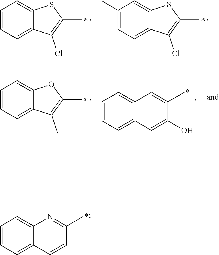 - DMQQVADKNWHDGR-UHFFFAOYSA-N *.*.*.*.*.*.C.C.CC1=CC2=CC(C)=C(F)C=C2O1.CC1=CC=C2C=C(C)C=CC2=C1.CC1=CC=C2N=C(C)C=CC2=C1.CC1=CC=C2OC(C)=CC2=C1.CC1=CC=C2OC(C)CC2=C1.CC1=CC=C2SC(C)=NC2=C1.CC1=NC2=CC(C)=C(F)C=C2S1.CC1=NC2=CC=C(Cl)C=C2N1 Chemical compound *.*.*.*.*.*.C.C.CC1=CC2=CC(C)=C(F)C=C2O1.CC1=CC=C2C=C(C)C=CC2=C1.CC1=CC=C2N=C(C)C=CC2=C1.CC1=CC=C2OC(C)=CC2=C1.CC1=CC=C2OC(C)CC2=C1.CC1=CC=C2SC(C)=NC2=C1.CC1=NC2=CC(C)=C(F)C=C2S1.CC1=NC2=CC=C(Cl)C=C2N1 DMQQVADKNWHDGR-UHFFFAOYSA-N 0.000 description 8