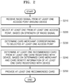 - a computer program product including a computer-readable storage medium, the computer-readable storage medium including instructions for performing: receiving a radio signal from at least one access point around a device; selecting at least one from the at least one access point, based on a strength of the received radio signal; determining a card merchant corresponding to the selected at least one access point; determining at least one recommended card regarding the determined card merchant from at least one card registered with the device, based on the card merchant and card benefit information of the registered at least one card; and providing the at least one recommended card.