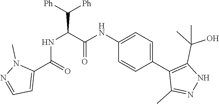 - ANHUTVRLOLKPNZ-UHFFFAOYSA-N CC(C)n1nccc1C(=O)NC(C(=O)Nc1ccc(-c2c(C3CC3)n[nH]c2C2CC2)cc1)C(C1CC1)C1CC1 Chemical compound CC(C)n1nccc1C(=O)NC(C(=O)Nc1ccc(-c2c(C3CC3)n[nH]c2C2CC2)cc1)C(C1CC1)C1CC1 ANHUTVRLOLKPNZ-UHFFFAOYSA-N 0.000 description 2