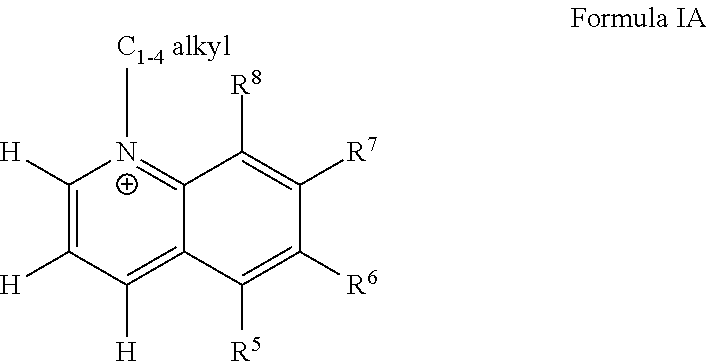 - Another aspect of the invention pertains to small molecule quinoline derived cations of Formula IA, wherein: