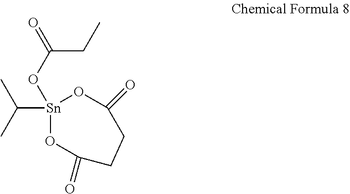 - KSUJGGPEXHVWRT-UHFFFAOYSA-K CCC(=O)O[Sn]1(C(C)C)OC(=O)CCC(=O)O1 Chemical compound CCC(=O)O[Sn]1(C(C)C)OC(=O)CCC(=O)O1 KSUJGGPEXHVWRT-UHFFFAOYSA-K 0.000 description 1