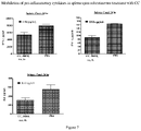FIG. 22 illustrates the biochemical parameters (CHOL: cholesterol, TRIG: triglycerides, URIC: uric acid, CK: creatine kinase) in the sera samples from CC treated mice on high fat diet, and compared to untreated high fat diet fed mice. Data were obtained at ˜180 days after initiation of high-fat diet and are shown as mean of 5 mice.