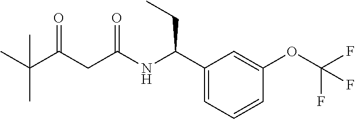- (R)-3-hydroxy-4,4-dimethyl-N—((S)-1-(3-(trifluoromethoxy)phenyl)propyl)pentanamide,