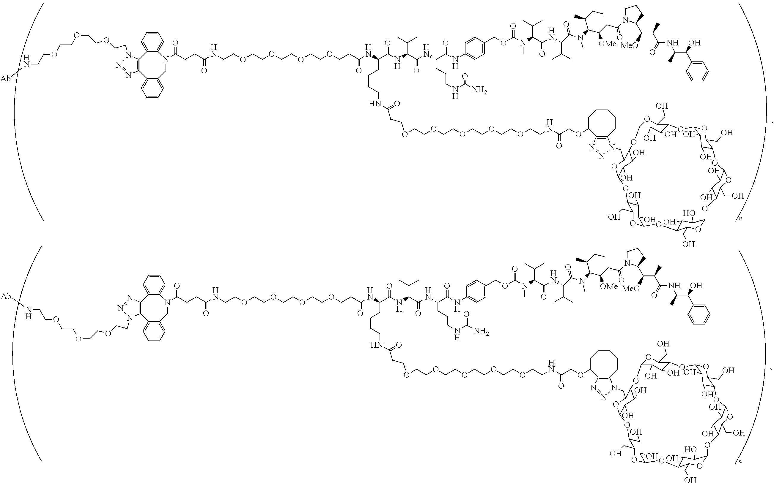 - SRIFYKLFWBPLLU-IBWIVLKLSA-N CC[C@H](C)[C@@H]([C@@H](CC(=O)N1CCC[C@H]1[C@H](OC)[C@@H](C)C(=O)N[C@H](C)[C@@H](O)c1ccccc1)OC)N(C)C(=O)[C@@H](CC(=O)[C@H](C(C)C)N(C)C(=O)OCc1ccc(NC(=O)[C@H](CCCNC(N)=O)CC(=O)[C@@H](NC(=O)[C@@H](CCCCCC(=O)CCC(=O)N2Cc3ccccc3C#Cc3ccccc32)NC(=O)CCCCCN2C(=O)CC(N3CCN(CC4OC5OC6C(CO)OC(OC7C(CO)OC(OC8C(CO)OC(OC9C(CO)OC(OC%10C(CO)OC(OC4C(O)C5O)C(O)C%10O)C(O)C9O)C(O)C8O)C(O)C7O)C(O)C6O)CC3)C2=O)C(C)C)cc1)C(C)C Chemical compound CC[C@H](C)[C@@H]([C@@H](CC(=O)N1CCC[C@H]1[C@H](OC)[C@@H](C)C(=O)N[C@H](C)[C@@H](O)c1ccccc1)OC)N(C)C(=O)[C@@H](CC(=O)[C@H](C(C)C)N(C)C(=O)OCc1ccc(NC(=O)[C@H](CCCNC(N)=O)CC(=O)[C@@H](NC(=O)[C@@H](CCCCCC(=O)CCC(=O)N2Cc3ccccc3C#Cc3ccccc32)NC(=O)CCCCCN2C(=O)CC(N3CCN(CC4OC5OC6C(CO)OC(OC7C(CO)OC(OC8C(CO)OC(OC9C(CO)OC(OC%10C(CO)OC(OC4C(O)C5O)C(O)C%10O)C(O)C9O)C(O)C8O)C(O)C7O)C(O)C6O)CC3)C2=O)C(C)C)cc1)C(C)C SRIFYKLFWBPLLU-IBWIVLKLSA-N 0.000 description 3