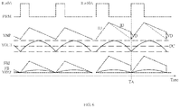 When the current value of the sensing signal IL increases (for example, from 0 A to 10 A), the on-time of the PWM signal PWM increases due to the fixed frequency control, resulting in the increasing of the peak voltage reached by the rising part IU of the ripple signal VNP, and the peak voltage of the second feedback signal FBI obtained by adding the ripple signal VNP to the first feedback signal FB, also increases.