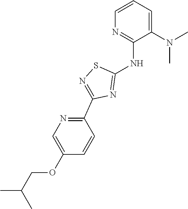 - KVRNSPDTBYZUGA-UHFFFAOYSA-N Cc1cccnc1N(c1nc(-c2ccc(OC(C)C)cn2)ns1)C(C)C Chemical compound Cc1cccnc1N(c1nc(-c2ccc(OC(C)C)cn2)ns1)C(C)C KVRNSPDTBYZUGA-UHFFFAOYSA-N 0.000 description 3