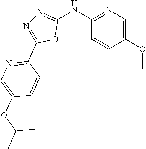 - HINUPNNIJNTPBT-UHFFFAOYSA-N CC(C)Oc1ccc(-c2nnc(Cc3cc(C(F)(F)F)c(C(C)C)cn3)o2)nc1 Chemical compound CC(C)Oc1ccc(-c2nnc(Cc3cc(C(F)(F)F)c(C(C)C)cn3)o2)nc1 HINUPNNIJNTPBT-UHFFFAOYSA-N 0.000 description 3