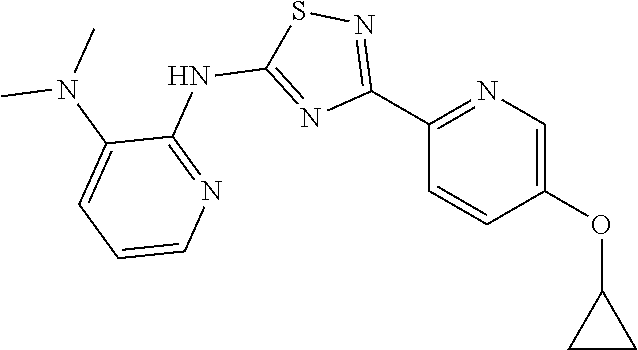 - DXNRDLDIICLGNK-UHFFFAOYSA-N Cc1cccnc1Nc1nc(-c2ccc(OCC3CC3)cn2)ns1 Chemical compound Cc1cccnc1Nc1nc(-c2ccc(OCC3CC3)cn2)ns1 DXNRDLDIICLGNK-UHFFFAOYSA-N 0.000 description 3