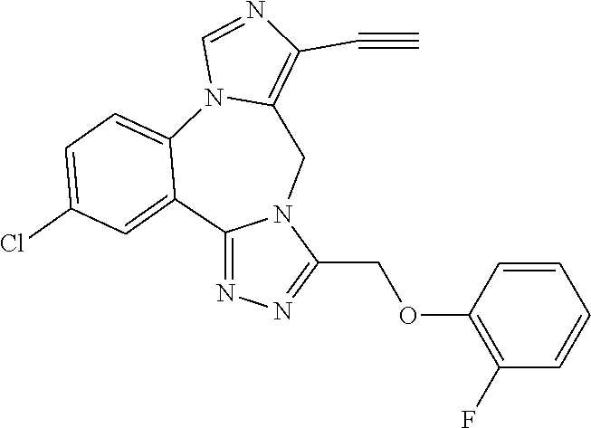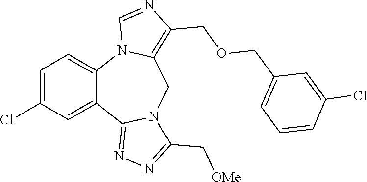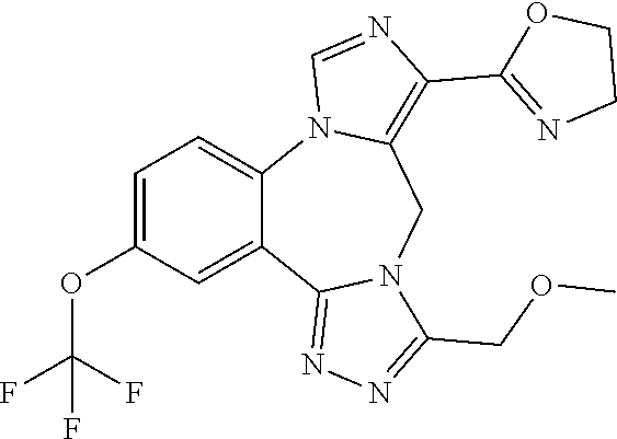 The effect of ethyl 3-methoxy-7-methyl-9H-benzo[f]imidazo[1,5-a][1,2,4]triazolo[4,3-d][1,4]diazepine-10-carboxylate on α5-containing GABAA receptor occupancy was also studied following a procedure that is essentially similar to the one as described in Example 107(B) (see above). This study demonstrated that ethyl 3-methoxy-7-methyl-9H-benzo[f]imidazo[1,5-a][1,2,4]triazolo[4,3-d][1,4]diazepine-10-carboxylate (0.01-10 mg/kg, i.v.) reduced Ro 15-4513 binding in hippocampus, without affecting cerebellum levels of Ro 15-4513 (FIG. 6) with a dose of 10 mg/kg, i.v., demonstrating >90% occupancy (FIG. 7).
