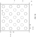 In the illustrated example in FIGS. 1A-1G, the panels 14, 16 and the openings S2, S3 generally have the same size and shape. However, as shown for example in FIGS. 2A-2C, in other embodiments, one or more of the panels 14, 16 in either or both canopies can have a different size (e.g., width, length, height), shape, and/or cross-section, etc. Additionally or alternatively, one or more of the openings S2, S3 in either or both canopies can have a different size and/or shape (e.g., circular, oval, square, rectangular, diamond, irregular, etc.). Moreover, the panels and/or openings can be configured to have a similar or corresponding pattern or different patterns on either or both of the canopies.