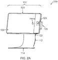 Reader 124 may be manufactured to be a portion of device case 120 and therefore contained within the portion of device case 120 so that it is not removable. However, as shown in FIG. 2D, the portion containing reader 124 may be opened and/or removed so that reader 124 is detachable from device case 124. In such embodiments, reader 124 may be connected to device case 120 through one or more mechanisms, such as a latch, clasp, screw, snap fit, or other securing and fastening mechanisms that allow for reader to be connected to computing device 130 through device case 120. Moreover, stand 110 is shown having a base securing mechanism 114 that corresponds to a base portion that may rest on a surface, such as a merchant countertop, table, or the like. Base securing mechanism 114 therefore allows balancing of stand 110 on the surface and use of computing device 130 within device case 120 when stand 110 is placed on the surface.