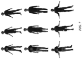 In particular embodiments, the computing device 110 may determine normal information 207 associated with the portion of the three-dimensional geometry 201 that is visible from the desired viewing direction. In particular embodiments, the normal information 207 may comprise three channels. When the three-dimensional geometry 201 represents a known pose of the first person, the computing device 110 may access the normal information 207 corresponding to the know pose. When the three-dimensional geometry 201 is constructed by interpolating three-dimensional geometries representing known poses for the first person, the computing device 110 may interpolate the normal information corresponding to the known poses. When the three-dimensional geometry 201 is constructed based on a three-dimensional geometry representing the desired pose for a second person, the computing device 110 may access the normal information 207 corresponding to the desired pose for the second person. Although this disclosure describes determining normal information associated with a portion of the three-dimensional geometry that is visible from a viewing direction in a particular manner, this disclosure contemplates determining normal information associated with a portion of the three-dimensional geometry that is visible from a viewing direction in any suitable manner.