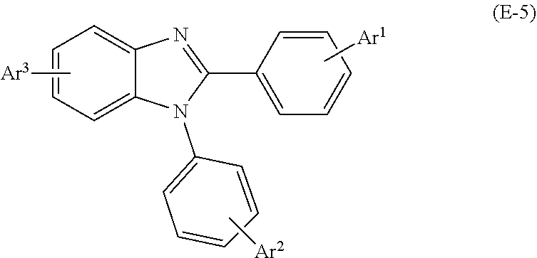 Layers as described below were formed sequentially on the ITO film of the transparent support substrate. A vacuum chamber was depressurized to 5×10−4 Pa. First, the vapor deposition boat containing HI was heated, and vapor deposition was performed so as to obtain a film thickness of 40 nm. Thus, hole injection layer was formed. Subsequently, the vapor deposition boat containing HT was heated, and vapor deposition was performed so as to obtain a film thickness of 15 nm. Thus, a hole transport layer was formed. Subsequently, the vapor deposition boat containing EB was heated, and vapor deposition was performed so as to obtain a film thickness of 15 nm. Thus, an electron blocking layer was formed. Subsequently, the vapor deposition boat containing EM-H and the vapor deposition boat containing Firpic (dopant material) were simultaneously heated, and vapor deposition was performed so as to obtain a film thickness of 30 nm. Thus, a light emitting layer was formed. A vapor deposition rate was adjusted such that a weight ratio between EM-H and Firpic was approximately 95:5. Subsequently, the vapor deposition boat containing ET was heated, and vapor deposition was performed so as to obtain a film thickness of 40 nm. Thus, an electron transport layer was formed. A vapor deposition rate for each layer was 0.01 to 1 nm/sec.