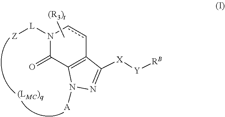 - when q is 1, then LMC is *—((CR11R12)nO)m(CR11R12)p—**, *—C(═O)NR15((CR11R12)nO)m(CR11R12)p—**, *—(CR11R12)nNR15((CR11R12)nO)m(CR11R12)p—**, *—(CR11R12)n—**, *—((CR11R12)nNR15)m(CR11R12)p—**, *—(CR11R12)C(═O)NR15(CR11R12)n—**, *—C(═)NR15(CR11R12)n—**, *—O(CR11R12)n—**, or *—NR15(CR11R12)n**, wherein the * of LMC indicates the point of attachment to Z and the ** of LMC indicates the point of attachment to A;
