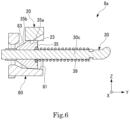 As illustrated in FIG. 3 , the cam 35 has an annular shape around the rod main body 30 c. The rod main body 30 c is inserted into a through hole at the center of the cam 35. An inner diameter of the through hole of the cam 35 is larger than an outer diameter of the rod main body 30 c. A retaining cap (not illustrated) is attached to the tip of the rod main body 30 c. The retaining cap prevents the cam 35 from falling off the tip of the rod main body 30 c. The cam 35 is in contact with the coil spring 39 on the base end side of the rod main body 30 c. The coil spring 39 is compressed as the cam 35 moves toward the base end side. The cam 35 moves to the base end side with respect to the rod main body 30 c when receiving a force toward the base end side larger than a repulsive force of the coil spring 39.