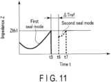 FIG. 11 is a schematic diagram illustrating an example of a variation with time of an impedance between the pair of grasping pieces, in a state in which the processor according to an exemplary embodiment is executing the output control in the first seal mode and in the second seal mode;