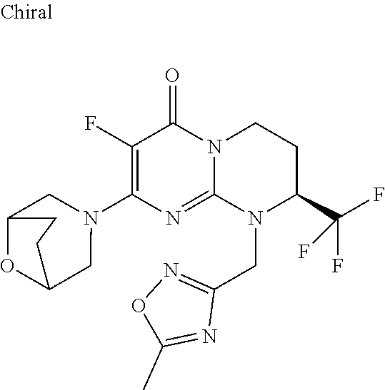 (S)-3-Fluoro-2-((R)-3- methylmorpholin-4-yl)- 9-(2-[1,2]oxazinan-2- yl-2-oxoethyl)-8- trifluoromethyl-6,7,8,9- tetrahydropyrimido- [1,2-a]pyrimidin-4-one |