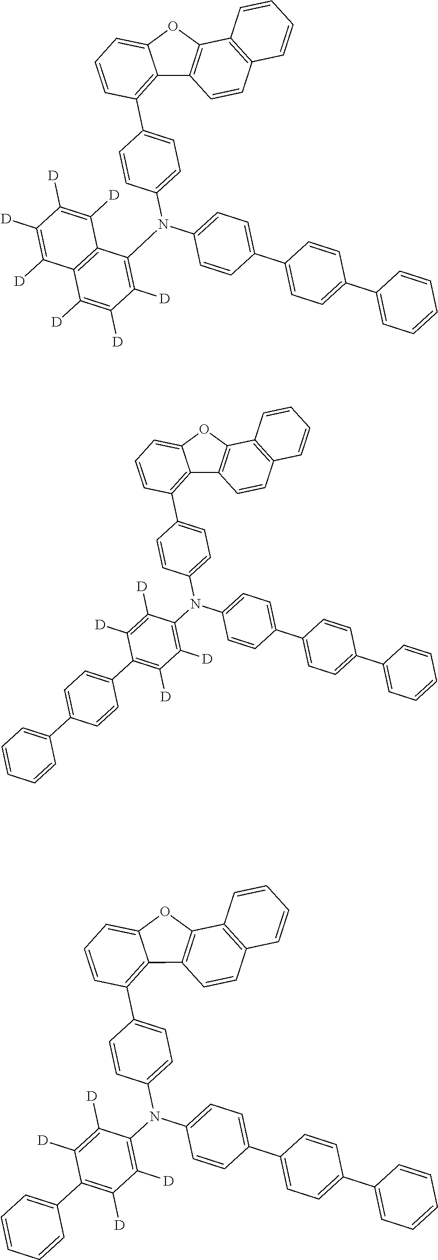 - adjacent two selected from R10 to R14 that are not the single bond are, adjacent two selected from R52 to R56 that are not either of the single bonds are, R52 and R61 are, and R56 and R57 are, not bonded to each other, thus forming no ring structure.