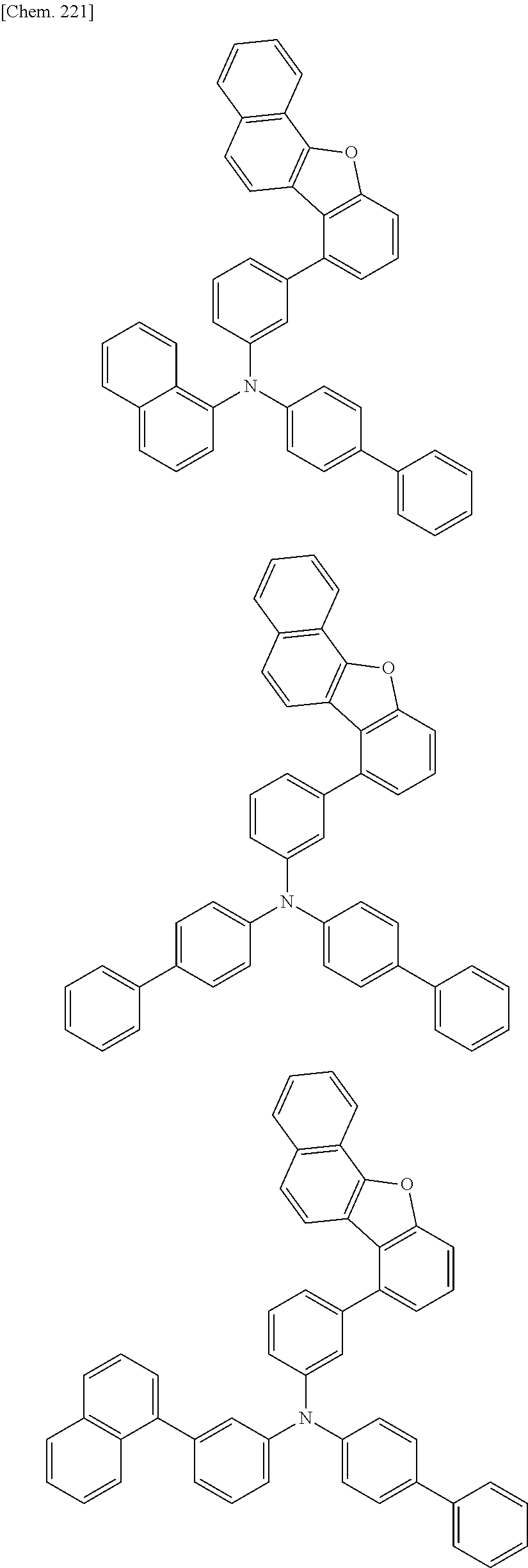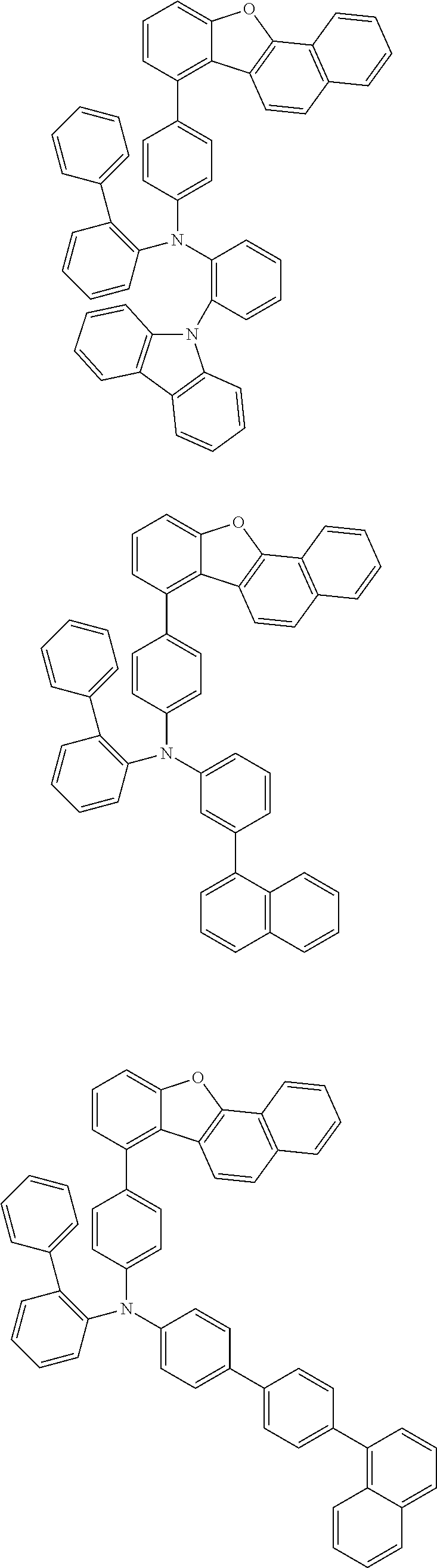 In an argon atmosphere, 1.25 g naphtho[1,2-b]benzofuran-7-ol (Intermediate A-4), 65 mg of N,N-dimethyl-4-aminopyridine, 1.08 mL of trifluoromethane sulfonic anhydride, and 27 mL of dichloromethane (dehydrated) were put in a flask and were cooled to 0° C. 10.6 mL of pyridine (dehydrated) was added dropwise, and then the mixture was stirred at room temperature for 2 hours. After completion of the reaction, the reaction mixture was deactivated with a sufficient amount of water. The solution was transferred into a separating funnel, was extracted with dichloromethane, and was dried over anhydrous sodium sulfate. Then, the solution was allowed to pass through a silica gel short column to remove origin impurities and the solution was concentrated. The resulting sample was dried in vacuum at room temperature for 3 hours to obtain 1.50 g (77%) of a white solid of naphtho[1,2-b]benzofuran-7-yl trifluoromethane sulfonate (Intermediate A).