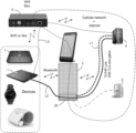 - FIG. 1 shows a system comprising a smartphone as an example of a mobile terminal ( 2 ) able to communicate, using cellular network and/or WAN, with: