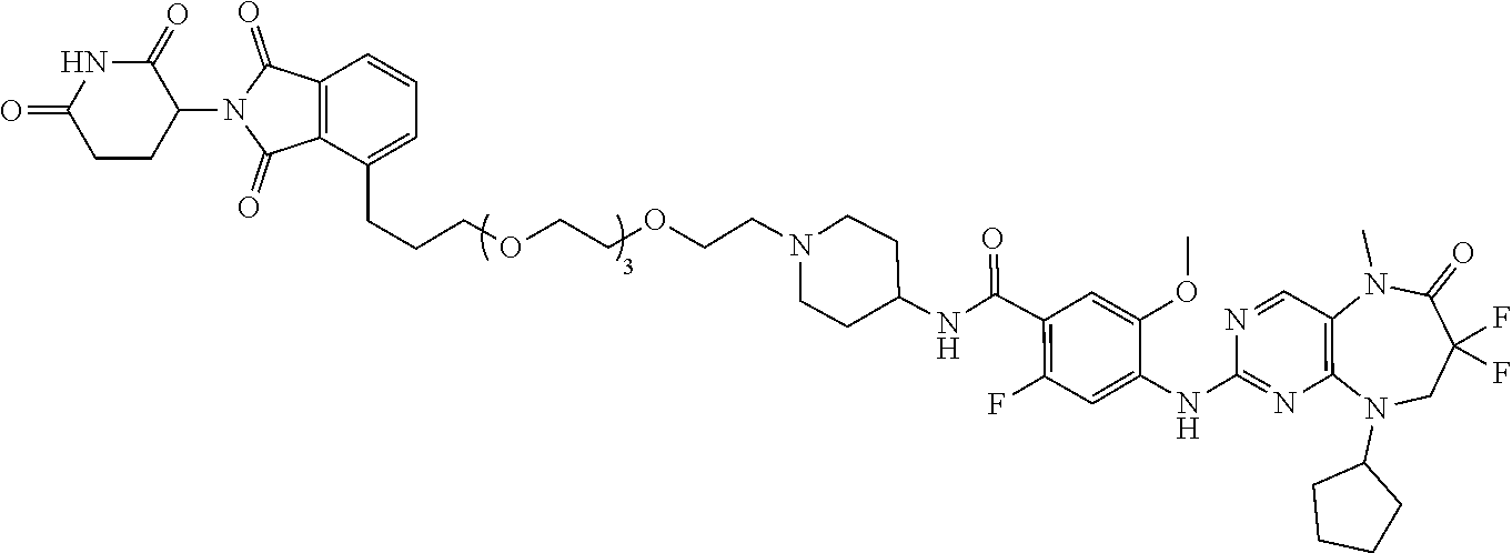 Comparative Example 3. 4-((9-cyclopentyl-7,7-difluoro-5-methyl-6-oxo-6,7,8,9-tetrahydro-5H-pyrimido[4,5-b][1,4]diazepin-2-yl)amino)-2-fluoro-5-methoxy-N-(1-(2-(2-(2-(phenylamino)ethoxy)ethoxy)ethyl)piperidin-4-yl)benzamide
