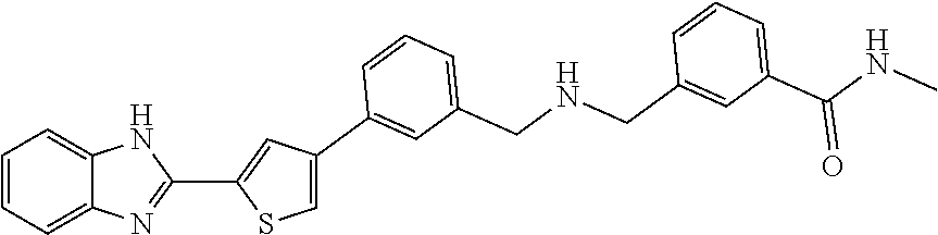 - FIG. 4 is the dose response curve for Compound 2, 3-(((3-(5-(1H-benzo[d]imidazol-2-yl)thiophen-3-yl)benzyl)amino)methyl)-N-methylbenzamide