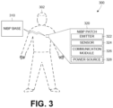 Referring again to FIG. 3 , the communication module 326 of the NIBP patch 320 can use one or more communication protocols, such as a network connection, to transmit data from the NIBP patch 320 to the NIBP base 310. In an example, the communication module 326 can communicate with the NIBP base 310 via a Bluetooth®, a near-field communication (NFC) connection, Wi-Fi Direct®, and/or WiGig. Data transmitted by the NIBP patch 320 to the NIBP base 310 can include the NIBP signal.