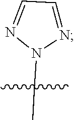 Furthermore, when more than one assignment is given for any member or substituent, embodiments of this invention comprise the various groupings that can be made from the listed assignments, taken independently, and equivalents thereof. By way of a second example on substituent terminology, if it is herein described that substituent Sexample is one of S1, S2, and S3, this listing refers to embodiments of this invention for which Sexample is S1; Sexample is S2; Sexample is S3; Sexample is one of S1 and S2; Sexample is one of S1 and S3; Sexample is one of S2 and S3; Sexample is one of S1, S2 and S3; and Sexample is any equivalent of each one of these choices. The shorter terminology “Sexample is one of S1, S2, and S3” is accordingly used herein for the sake of brevity, but not by way of limitation. The foregoing second example on substituent terminology, which is stated in generic terms, is meant to illustrate the various substituent assignments described herein.