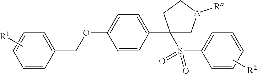 - VVKPIXIDTVZMAG-UHFFFAOYSA-N C1(=CC=CC=C1)S(=O)(=O)C1(CCCC1)C1=CC=C(C=C1)OCC1=CC=CC=C1 Chemical compound C1(=CC=CC=C1)S(=O)(=O)C1(CCCC1)C1=CC=C(C=C1)OCC1=CC=CC=C1 VVKPIXIDTVZMAG-UHFFFAOYSA-N 0.000 claims description 2