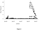 FIG. 1 illustrates Bulk Segregant Analysis results based on three F2 populations for all Cannabis chromosomes.