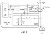 - the at least one control circuit is configured receive the detection signals output from the respective detector element over one or more cycles of the emitter signal, generate a flag signal responsive to detection events indicated by the detection signals exceeding a detection threshold, and output a readout signal for the respective detector element responsive to the flag signal.