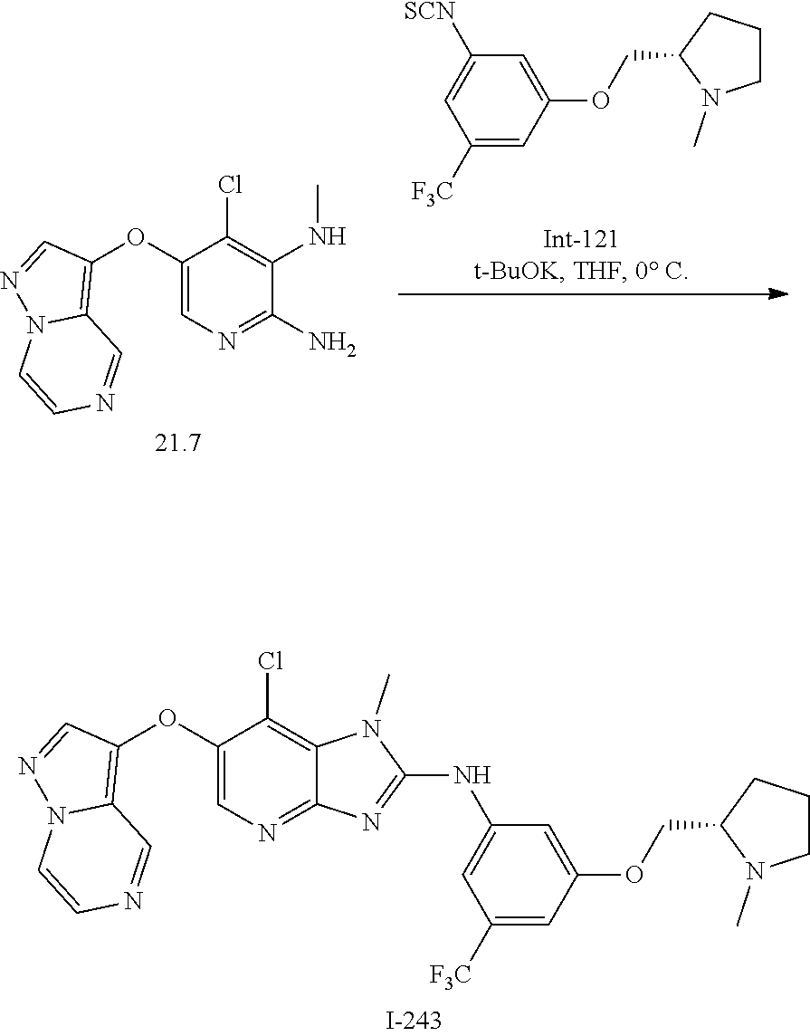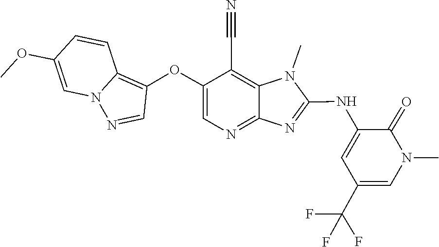 Assay Procedure: The Caco-2 plate is removed from the incubator and washed twice with pre-warmed HBSS (10 mM HEPES, pH 7.4), and then incubated at 37° C. for 30 minutes. The stock solutions of control compounds are diluted in DMSO to get 1 mM solutions and then diluted with HBSS (10 mM HEPES, pH 7.4) to get 5 μM working solutions. The stock solutions of the test compounds are diluted in DMSO to get 1 mM solutions and then diluted with HBSS (10 mM HEPES and 4% BSA, pH 7.4) to get 5 μM working solutions. The final concentration of DMSO in the incubation system is 0.5%. To determine the rate of drug transport in the apical to basolateral direction. 75 μL of 5 μM working solutions of test compounds are added to the Transwell® insert (apical compartment) and the wells in the receiver plate (basolateral compartment) are filled with 235 μL of HBSS (10 mM HEPES and 4% BSA, pH 7.4). To determine the rate of drug transport in the basolateral to apical direction, 235 μL of 5 μM working solutions of test compounds are added to the receiver plate wells (basolateral compartment) and then the Transwell® inserts (apical compartment) are filled with 75 μL of HBSS (10 mM HEPES and 4% BSA, pH 7.4). Time 0 samples are prepared by transferring 50 L of 5 μM working solution to wells of the 96-deepwell plate, followed by the addition of 200 L cold methanol containing appropriate internal standards (IS). The plates are incubated at 37° C. for 2 hours. At the end of the incubation, 50 μL samples from donor sides (apical compartment for Ap→Bl flux, and basolateral compartment for Bl→Ap) and receiver sides (basolateral compartment for Ap→Bl flux, and apical compartment for Bl→Ap) are transferred to wells of a new 96-well plate, followed by the addition of 4 volume of cold acetonitrile or methanol containing appropriate internal standards (IS). Samples are vortexed for 5 minutes and then centrifuged at 3,220 g for 40 minutes. An aliquot of 100 μL of the supernatant is mixed with an appropriate volume of ultra-pure water before LC-MS/MS analysis. To determine the Lucifer Yellow leakage after 2 hour transport period, stock solution of Lucifer yellow is prepared in ultra-pure water and diluted with HBSS (10 mM HEPES, pH 7.4) to reach the final concentration of 100 μM. 100 μL of the Lucifer yellow solution is added to each Transwell® insert (apical compartment), followed by filling the wells in the receiver plate (basolateral compartment) with 300 μL of HBSS (10 mM HEPES, pH 7.4). The plates are incubated at 37° C. for 30 minutes. 80 L samples are removed directly from the apical and basolateral wells (using the basolateral access holes) and transferred to wells of new 96 wells plates. The Lucifer Yellow fluorescence (to monitor monolayer integrity) signal is measured in a fluorescence plate reader at 485 nM excitation and 530 nM emission.
