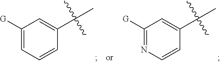 - Aspect 41. The compound of any one of aspects 36-40, wherein G is substituted with 1 or 2 substitutents.