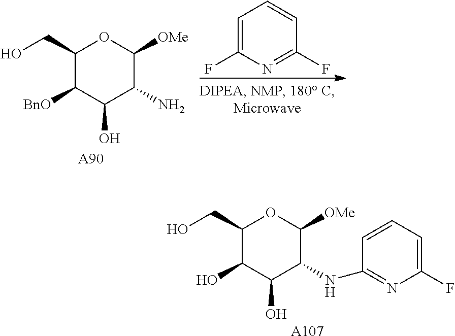 A number of publications describe ligands that are thought to bind to the CRD region of ASGPRs. For example, Stokmaier et al. (Bioorg. Med. Chem., 2009, 17, 7254) describes the synthesis of a series of D-GalNAc derivatives where the anomeric OH group is removed and the acetamido group is replaced with a 4-substituted 1,2,3-triazole moiety. The most potent compound is twice as potent as D-GalNAc in competitive NMR binding experiments. Mamidyala et al. (JACS, 2012, 134, 1978) describes compounds derived from 2-azidogalactosyl analogs where the anomeric position is occupied by either a β-methyl or a β-4-methoxy-phenyl group and the azide group is replaced with an amide or a triazole. The ligands were tested for binding activity by surface plasmon resonance and many exhibited more potent Kd values than that of the parent N-acetylgalactosamine.