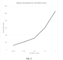 FIG. 3 : Median read depth obtained for an ALK-EML4 fusion at 0.0625, 0.125, 0.25, 0.5 and 1% allelic fraction. The median of the number of fusion reads detected in the three replicates was calculated and plotted against the different allelic fractions.