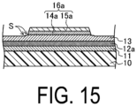 Next, a molybdenum film (a thickness of approximately 125 nm) is formed by, for example, a sputtering method to cover the first metal layer 14 a and the like and the second metal film 15 is formed, as illustrated in FIG. 25 (second metal film deposition step).