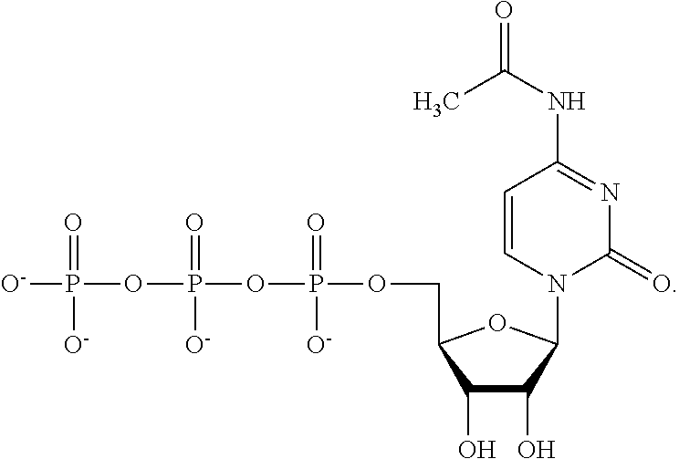 - (ii) N4-acetylcytidine, and (a) a 5′ monophosphate; (b) a 5′ diphosphate; or (c) a 5′ triphosphate, and a structure of: