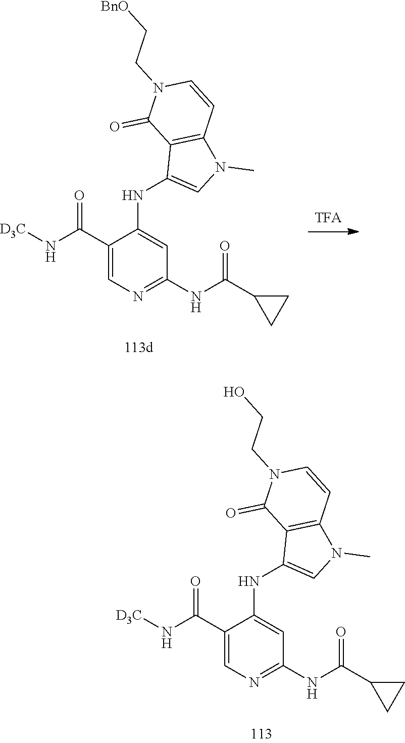 The selectivity against other JAK family subtypes is regarded as crucial in order to increase the intended pharmacological effects and to reduce side effects. Identifying kinase inhibitors with a high degree of TYK2 selectivity has posed a significant challenge partly due to the high sequence homology of the active site among the JAK family kinases. TYK2 specificity is critical for clinical application of TYK2 kinase inhibitors, because Tyk2 knockout mice are viable with normal blood cell counts, whereas deficiency of JAK3 results in severe combined immunodeficiency in mice, and JAK1 or JAK2 knockout mice show perinatal lethality. (Ghoreschi, et al. 2009 Immunol Rev. 228:273-287; Karaghiosoff, et al. 2000 Immunity. 13:549-560; Shimoda, et al. 2000 Immunity. 13:561-571.) Genetic evidence suggests that pharmacological inhibition of TYK2 should not result in acute toxicity in human patients, but careful monitoring for viral or mycobacterial infections would be warranted in patients treated for prolonged periods. (Akahane, et al. 2017 Br J Haematol. 177(2): 271-282.)