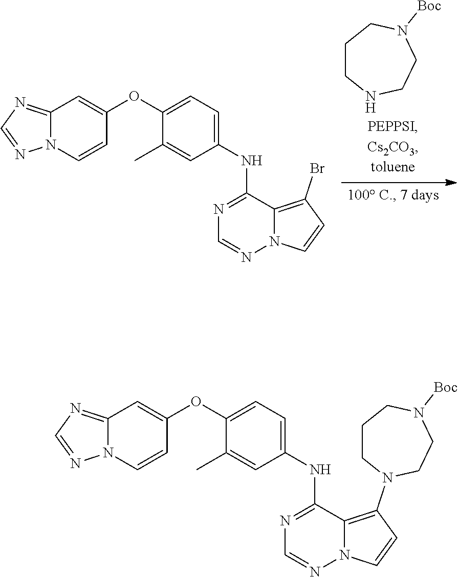 The purpose of the wtERBB2, ERBB2-A775_G776insYVMA (ERBB2YVMA), wtEGFR biochemical assay was to evaluate the inhibition (% inhibition and IC50 values) of the small molecule inhibitors by using the “HotSpot” radiometric kinase activity assay. HotSpot assays monitor the production of kinase substrate by the radioactive gamma phosphate of adenosine triphosphate (33P-ATP) during biochemical reactions. HotSpot assays was performed in steps upon completion of the kinase reaction: deposition of a reaction mixture aliquot onto P81 ion exchange paper, extensive washing of the aforementioned P81 paper using phosphoric acid to remove unbound radiolabeled 33P-ATP from the P81 paper, and finally visualization and quantification of the dried P81 paper utilizing a phosphoimager. The radioactive signal generated from the aliquot of buffer solution was proportional to the amount of radiolabeled substrate produced, and which is generally reflective of kinase activity. wtERBB2 was purchased from Reaction Biology (Cat: Kin-21-497), ERBB2-A775_G776insYVMA was purchased from SignalChem (Cat: E27-13BG), and wt EGFR was purchased from Invitrogen (Cat: PR7295B). Typical reaction solutions (10 μL final reaction volume) contained the following buffer conditions: 20 mM Hepes (pH 7.5), 10 mM MgCl2, 1 mM EGTA, 0.01% Brij35, 0.02 mg/mL BSA, 0.1 mM Na3VO4, 2 mM DTT, 1% DMSO. The assay was primed by preparing a fresh 0.2 mg/mL solution of pEY (Sigma Cat: P7244) substrate in the reaction buffer and supplementing that solution with 2 mN of MnCl2 as substrate cofactor (Sigma Cat: M9522). The kinase of interest was then added to the solution at the appropriate concentration (30 nM wtERBB2 from, or 20 nM ERBB2YVMA, or 4 nM wtEGFR) and gently mixed prior to delivery of compound in 100% DMSO by acoustic dispensing (Beckman Echo550). Compound, Kinase, and substrate were allowed to incubate for 20 min at room temperature prior to the initiation of the reaction by addition of 33P-ATP (PerkinElmer Cat: NEG602, final conc 10 μM). The reaction was allowed to run for 2 hours at room temperature and was then spotted onto P81 ion exchange paper, washed with a 0.75% Phosphoric acid solution, and imaged to quantify the amount of radioactivity. IC50 determinations were made from a plot of kinase activity as a function of inhibitor concentration fit to the 4-parameter IC50 equation with the enzyme concentration held constant using GraphPad Prism (San Diego). Table 2 provides biochemical activity of various compounds in this disclosure against Her2 WT, Her2 YVMA and EGFR WT kinases in HotSpot assay.