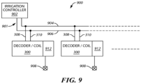 FIG. 9 is a diagram of a decoder-based irrigation control system including multiple integrated coil and decoder modules according to several embodiments of the invention.