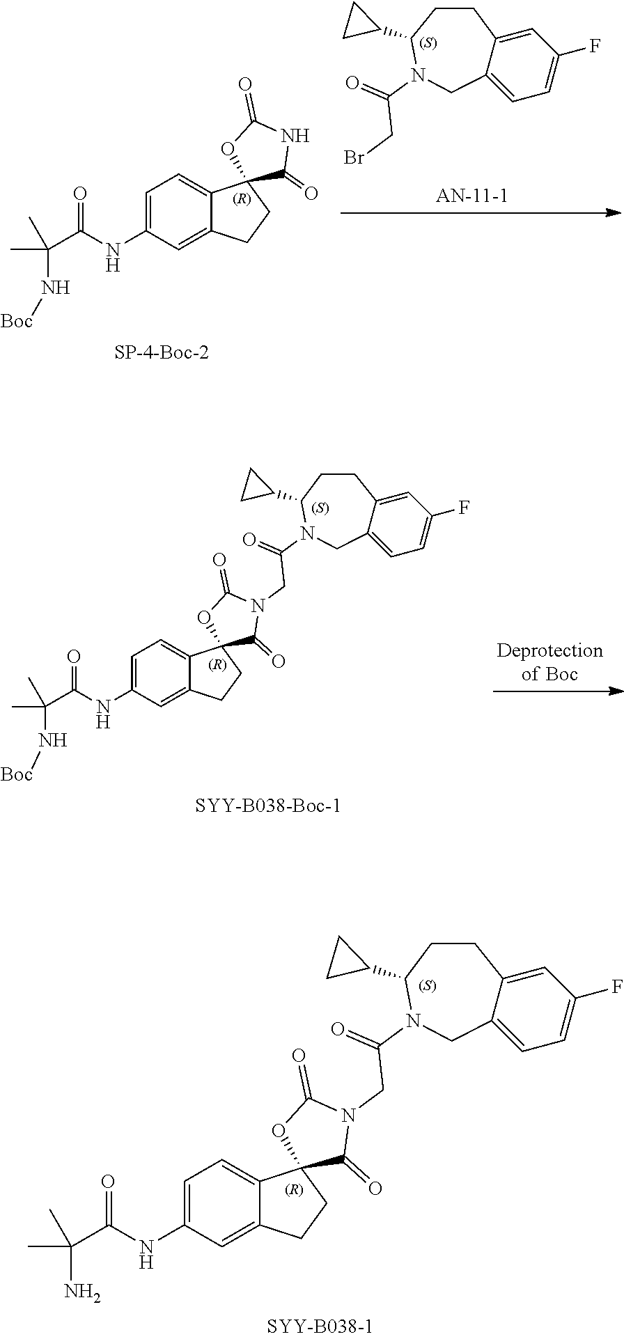 Conventional experiments, including proper adjustment of the reaction conditions, the reactants and sequence of the synthetic route, the protection of any chemical functional group, which may not be compatible with the reaction conditions, and the deprotection at an appropriate point in the reaction sequence of the method, are all included in the scope of the present invention. Appropriate protecting groups and methods of using such appropriate protecting groups to protect or deprotect different substituents are well known to a person skilled in the art; examples thereof may be found in T. Greene and P. Wuts, Protecting Groups in Chemical Synthesis (third edition), John Wiley & Sons, NY (1999), which is incorporated herein by reference in its entirety. The synthesis of the compounds of the present invention can be achieved by methods similar to those described in the synthetic Schemes described above and in specific examples.