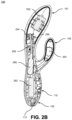 FIG. 2A is an exploded view of the personal massage device 100, and FIG. 2B is a cross-sectional view of the personal massage device 100, according to one embodiment. Because the exploded view in FIG. 2A illustrates many of the same components as the cross-sectional view in FIG. 2B, the description of FIGS. 2A and 2B is combined for ease of description.