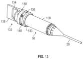 - FIG. 19 depicts a further embodiment of the monitoring device in a section through a plane parallel to the axis of the elongate member. For the sake of clarity, certain internal details of the monitoring device are omitted from this drawing.