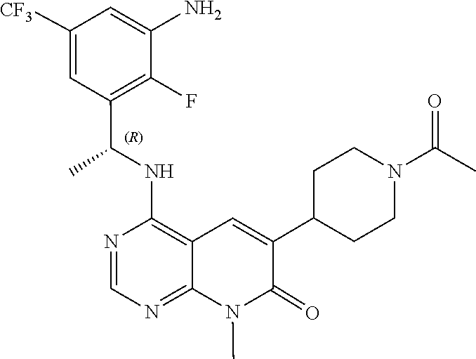 Son of Sevenless 2 (SOS2), a homolog of SOS1 in mammalian cells, also acts as a GEF for the activation of RAS-family proteins (Pierre et al., Biochem. Pharmacol., 2011, 82 (9): 1049-56; Buday et al., Biochim. Biophys. Acta., 2008, 1786(2): 178-87). Published data from mouse knockout models suggests a redundant role for SOS1 and SOS2 in homeostasis in the adult mouse. Whilst germline knockout of SOS1 in mice results in lethality during mid-embryonic gestation (Qian et al., EMBO J., 2000, 19(4): 642-54), systemic conditional SOS1 knockout adult mice are viable (Baltanas et al., Mol. Cell. Biol., 2013, 33(22): 4562-78). SOS2 gene targeting did not result in any overt phenotype in mice (Esteban et al., Mol. Cell. Biol., 2000, 20(17): 6410-3). In contrast, double SOS1 and SOS2 knockout leads to rapid lethality in adult mice (Baltanas et al., Mol. Cell. Biol., 2013, 33(22): 4562-78). These published data suggest that selective targeting of individual SOS isoforms (e.g., selective SOS1 targeting) may be adequately tolerated to achieve a therapeutic index between SOS1/RAS-family protein driven cancers (or other SOS1/RAS-family protein pathologies) and normal cells and tissues.