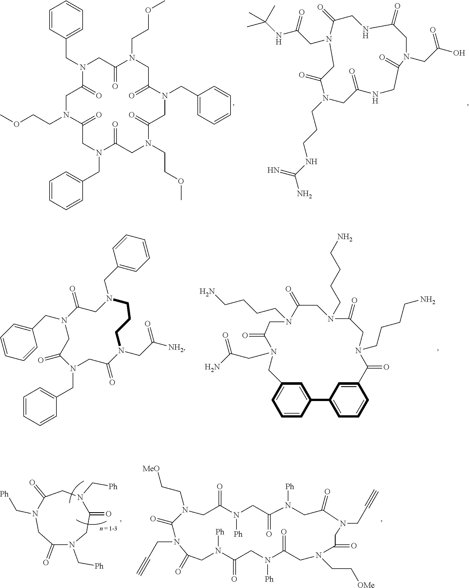 - peptoids and peptide-peptoid hybrids have been observed to display improved cell permeability properties in comparison to the corresponding peptide oligomer analogs.